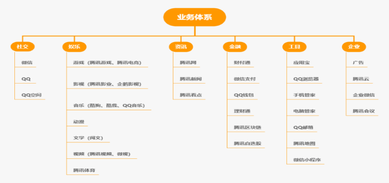 “连接生态”,是腾讯对自己的定位。抛开尚在研发中的创新科技不谈,腾讯大致可以分为六个板块,社交、娱乐、咨询、金融、工具以及企业端。其中,只有金融板块和工具板块(地图业务除外)和全真互联关联度较小,其它业务均有相应的场景匹配。
