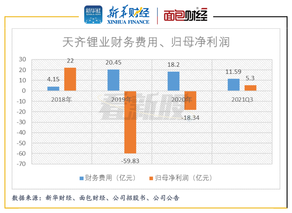 图4:2018年至2021年前三季度天齐锂业财务费用、归母净利润