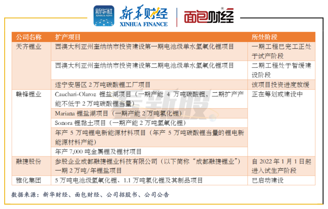 图11:部分锂业公司的扩产项目