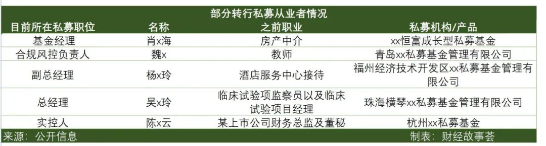 而除了媒体转型基金经理以外,上至大厂高管,下到医生、教师、文秘,不少都以加入私募机构或自己发行产品的形式,入局私募。