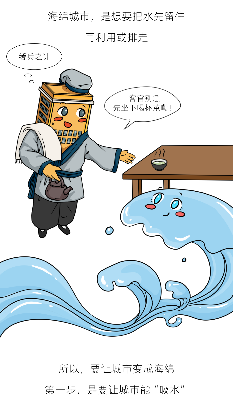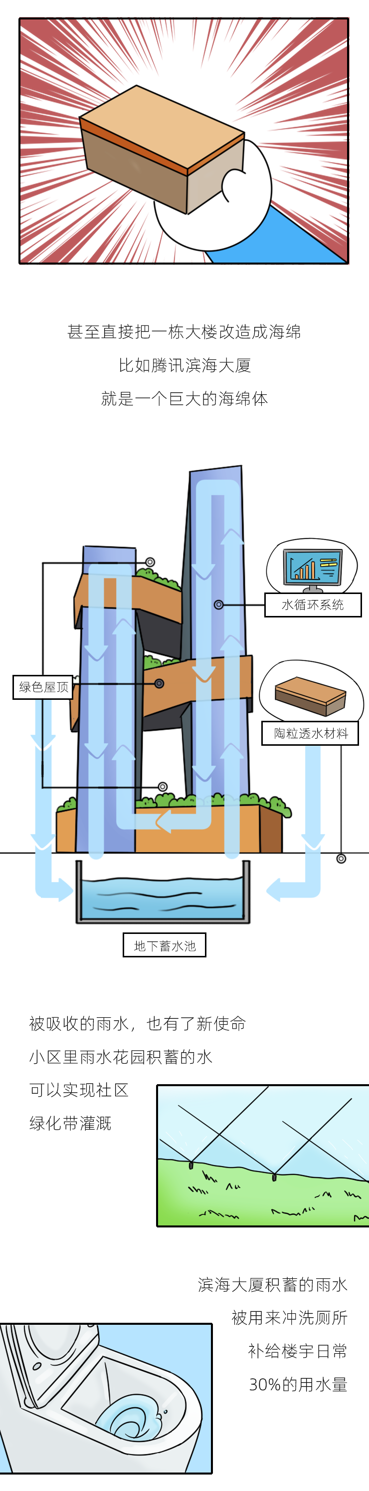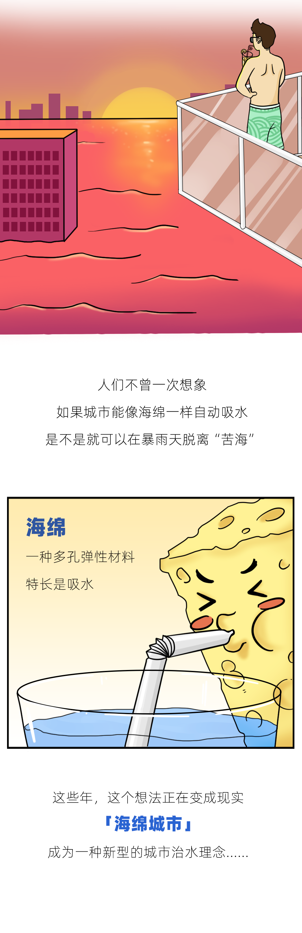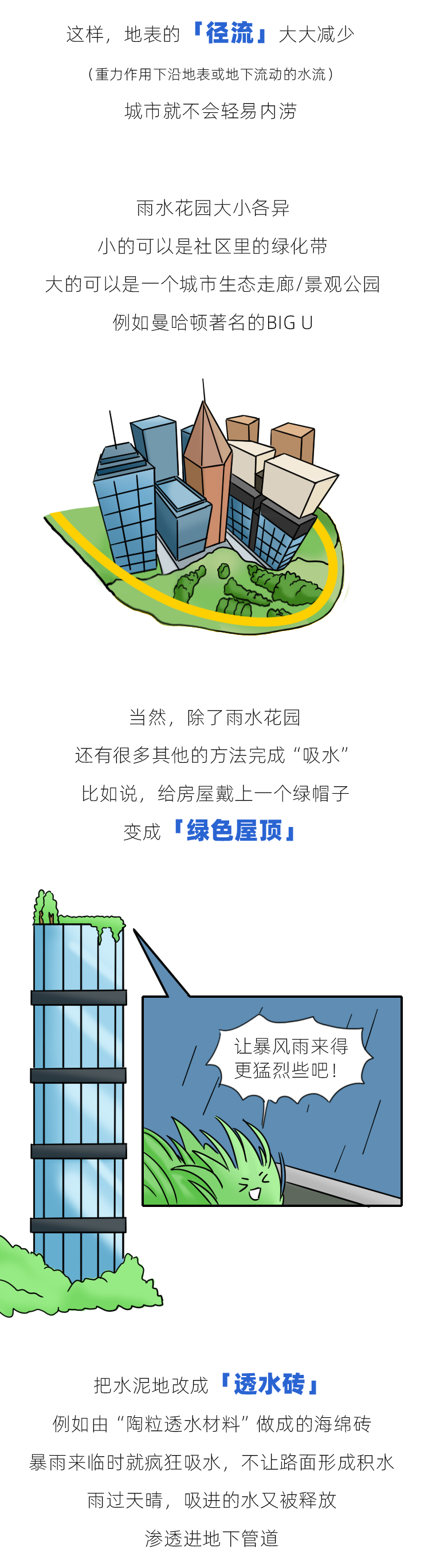 海绵城市可以弹性调节雨水的影响,减少城市内涝。