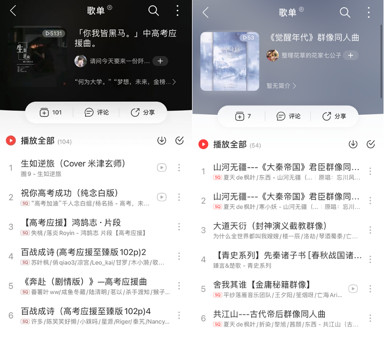 中高考应援曲歌单和《觉醒年代》群像同人歌单
