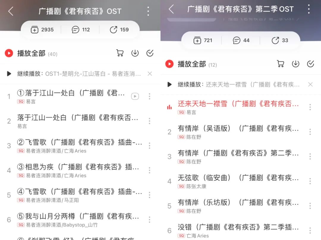 广播剧《君有疾否》两季OST音乐,易者连消醉清酒制作 从作品本身来看,他们的作品多贴近时下年轻人的兴趣和品味,而随着音乐形式的多元化发展,共同创作的工种也不断增加。