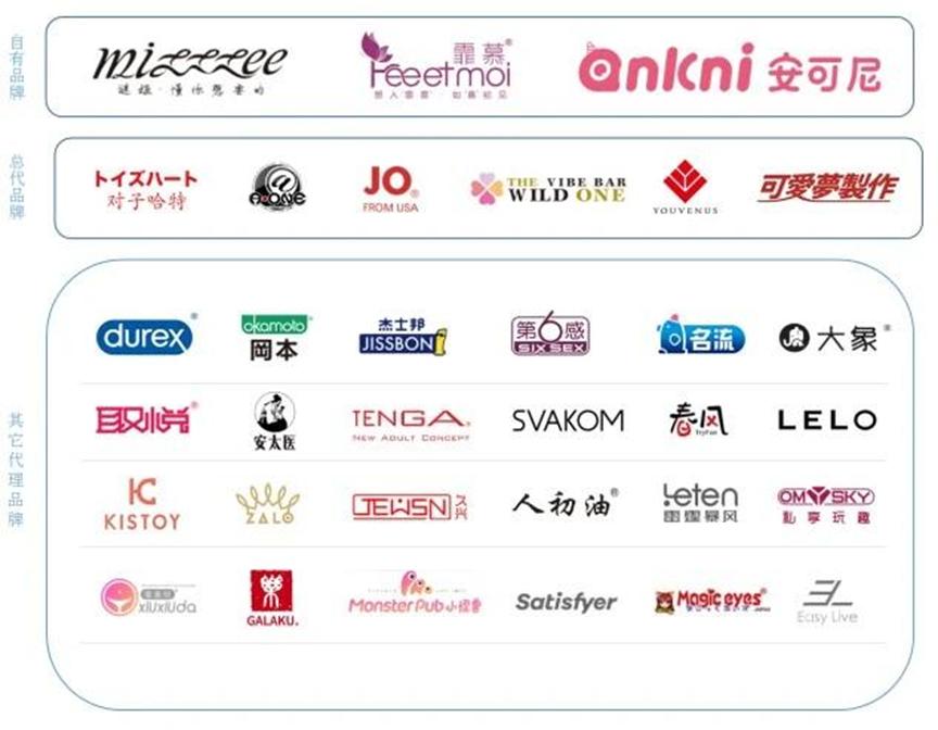比如天猫最大情趣用品渠道商家醉清风,不仅代理了杜蕾斯、冈本、杰士邦等100多个品牌,旗下更是开发了谜姬、霏慕等自有品牌。