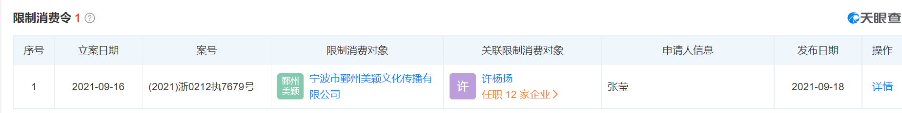 许杨扬旗下的另一家公司美颖文化则因教育培训合同纠纷被法院判断为失信人: