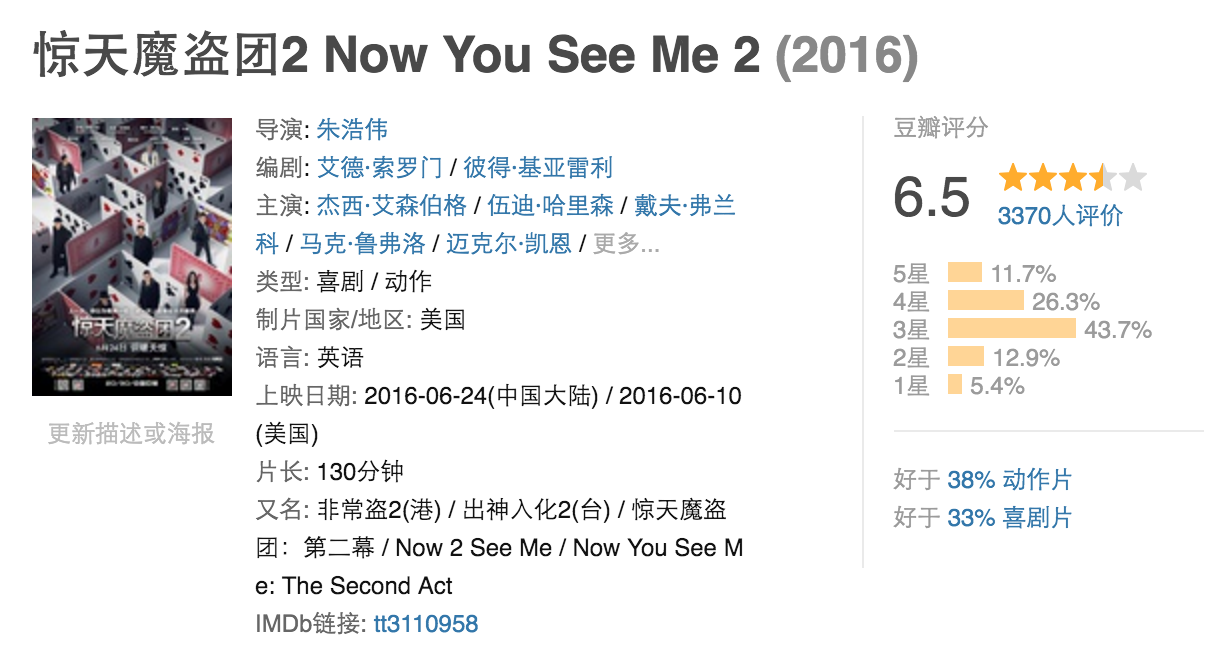 我把差评都浏览了一圈,我大天朝的观众们啊,把《惊天魔盗团2》里不严丝,不合缝的剧情败笔掀了个底儿掉。