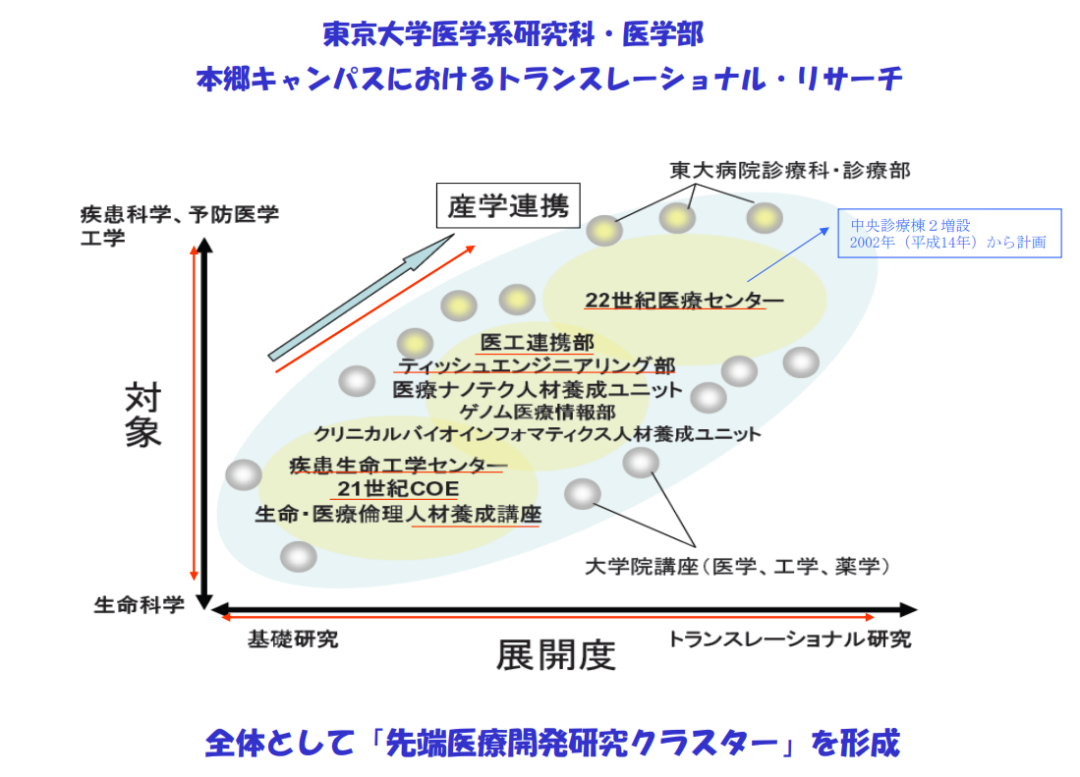 为搭建医学与工学之间的桥梁,东大医院成立了医工合作部,其核心是促进科研成果的临床应用转化,切实解决临床问题。此外,东大医院还分别与药学、信息学、化学等关键性学科紧密联系,共同成立了医疗纳米技术人才培养中心、基因组医学信息部、生物信息学人才培养中心等研究机构,并在东京大学中多次组织医学、工学、药学等多学科讲座。