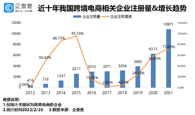 1、我国现存跨境电商相关企业3.39万家