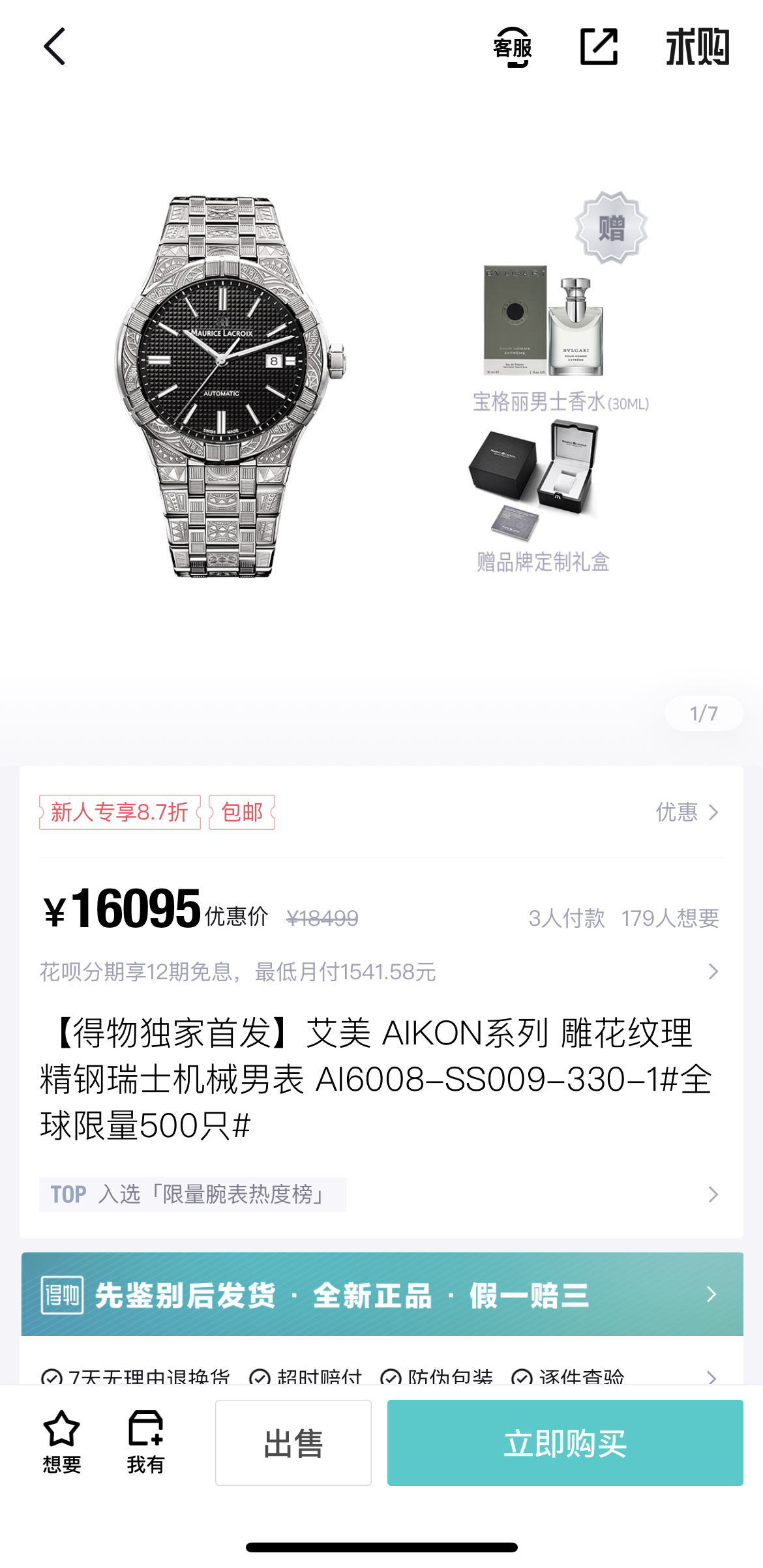 根据搜狐新闻发布的资讯,瑞士腕表品牌艾美表(MAURICE LACROIX)在得物App上独家首发旗下AIKON系列全球限量雕花腕表。这款腕表在华仅售五枚。而此前艾美表也已经官方入驻得物。