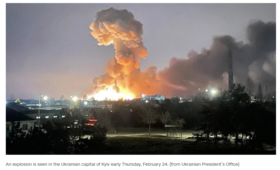 “而现在,我们在这里。2月24日凌晨5点,基辅被俄罗斯轰炸了。”