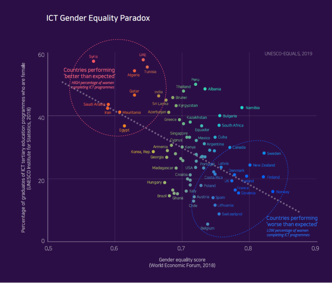 既然无法从根本上回避性别,那么增加ICT领域的女性从业数量,尤其是鼓励更多女性投身AI开发,才能从源头上既赋予AI以温度,同时避免偏见。