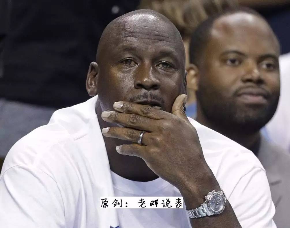 说起来,乔丹拥有将近2米的身高(合计约6尺6)、体重98KG,佩戴一款直径只有40MM的劳力士迪通拿是很难想象的,平心而论,老邓会认为佩戴47MM尺寸的腕表会更加跟飞人手腕恰当。