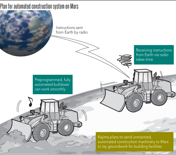 在应对人口急速老龄化的同时,日本也开始了自动化建设技术领域的试水。机器人产业巨头们动作频频,市场上的遥控推土机、无人机、人工智能辅助控制系统等各种建设机器人不断推陈出新。目前,日本宇宙航空研究开发机构(JAXA)正准备将这种技术应用到尚未开发且劳动力稀缺的外星球去,进而建设人类的太空基地。