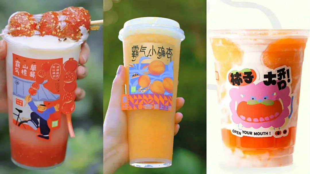 比如去年秋季开始,柿子、杏等颜色黄澄澄的、具有丰收感的饮品,多个品牌都在推出;到了冬季,山楂、板栗等冬日氛围的食材,也在被使用。