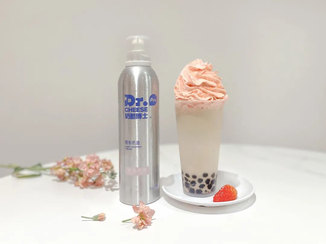 奶酪博士的草莓风味奶油顶,直接定制好颜色和风味,到门店打开就可以用,颜值和操作都能满足。