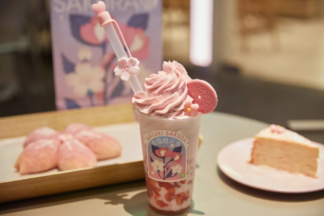 樱花本就是春天里的美好意象,奶茶与花天然具有关联性: