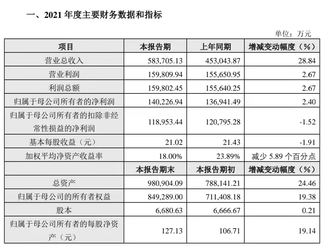 2022年2月24日晚间,石头科技发布业绩快报称,2021年公司实现营业收入58.37亿元,同比增长28.84%;实现归属于母公司所有者的净利润14.02亿元,同比增长2.4%。