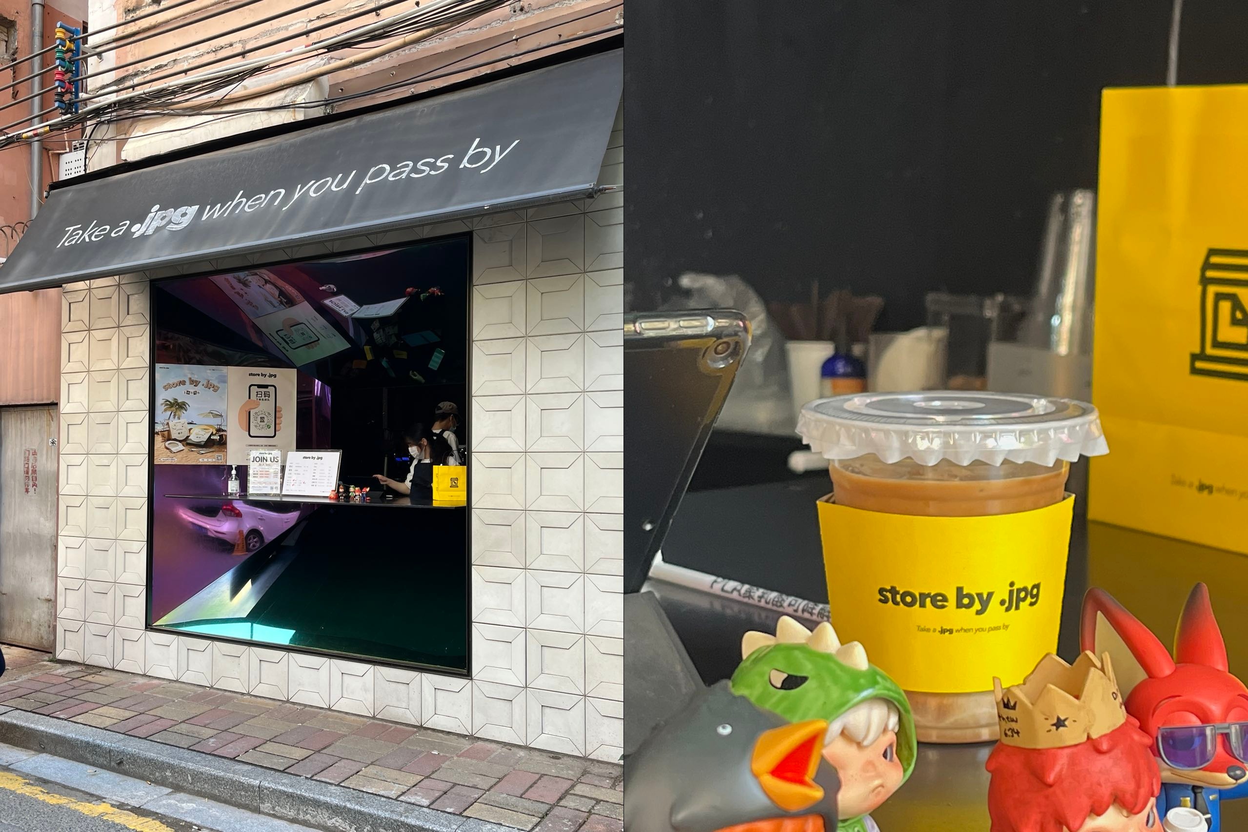 沿途先是会嗅到.jpg的咖啡香气,这家窗口式点单的咖啡店其实并不起眼,不到30平方米,没有坐着聊天的地方。和大多数营造神秘感的店一样,室内光线幽暗,门口上方像雨棚一样搭出架子,写着“Take a .jpg when you pass by”,除了在解释店名,也有点小趣味,下一秒你可能也想停下来拍张照。