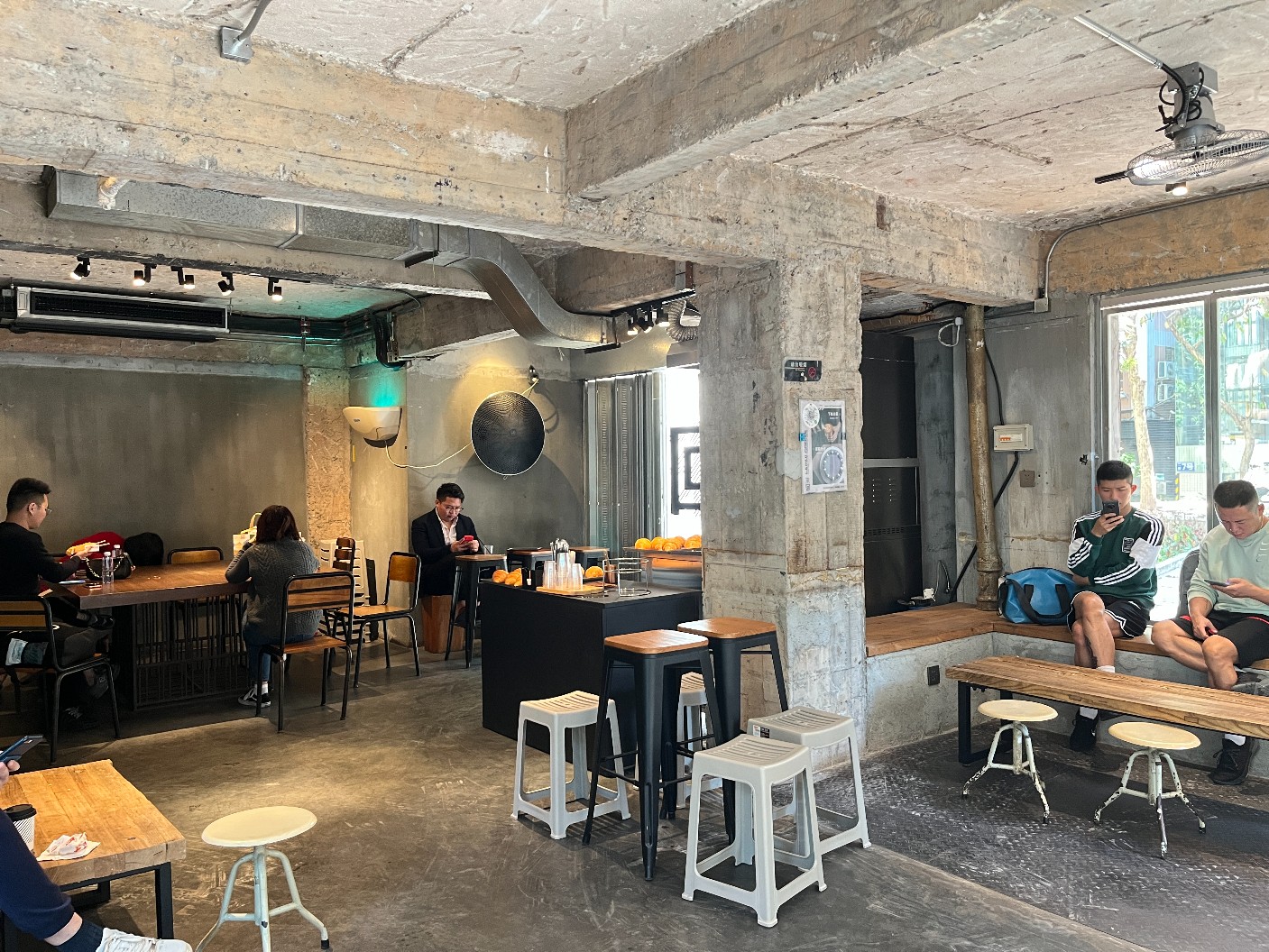 门前几棵自然生长的小树下,是粗矿的水泥墙,甚至找不到明显的店名,店内也保留着一些建筑物原有的水泥结构,摆放着木质或白色的桌椅。dirty和冰美式是畅销产品,顾客可以根据自己的喜好选择不同浓郁度的咖啡豆。