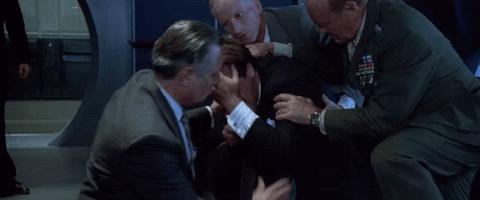 1996年的《独立日》就是看中了这一点,让电脑工程师大卫和飞行员史蒂文驾驶着修好了的外星飞船,伪装成外星人,带着核弹问候了一下月球背面的外星母舰,才完成了这场战争的逆转。
