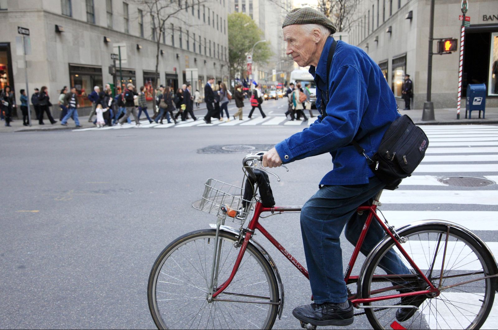 他总是穿着标志性的蓝色外套,骑着一辆自行车;就像片中所述,他对时尚的判断没有高低贵贱之分,既青睐用沙发布料改制的西装,同时也拍摄最昂贵的时装行头;在将近40年的时间里,他为《纽约时报》提供街拍专栏,风雨无阻。