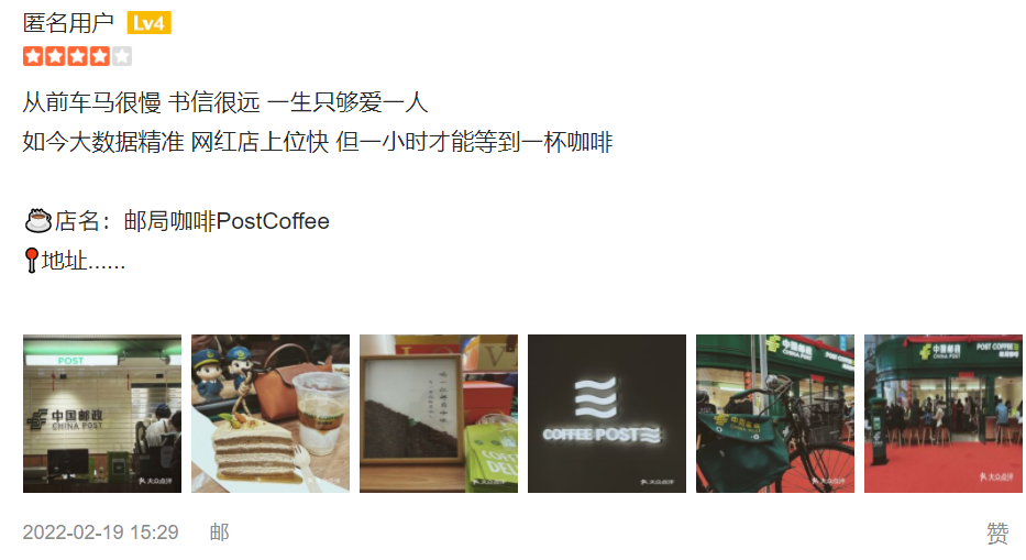 但目前,邮局咖啡在大众点评网的评分并不高,3.7分。拉低分数的主要原因在服务,吐槽最多的便是“出品慢”。看来,被“打卡网友的热情”吓到的邮局咖啡,还需要进一步打磨团队以及出单模式。