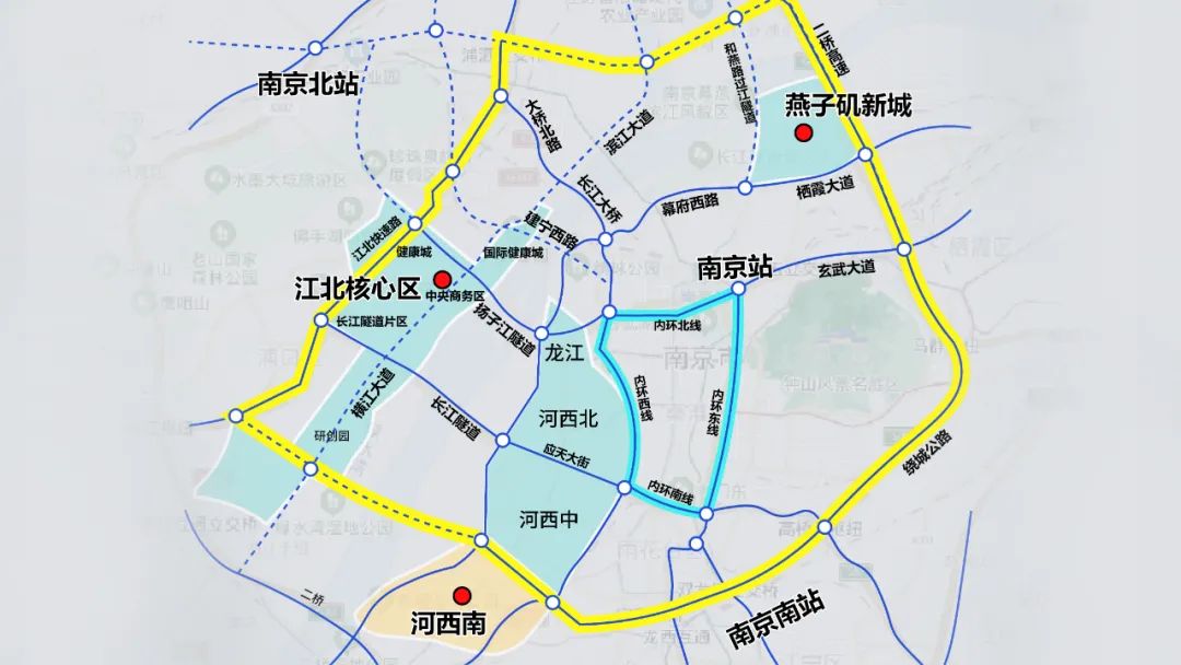 其次,板块紧邻着由长江二桥、绕城公路、江北大道、长江五桥等一起形成闭合的南京绕城快速路,串联起河西、南部新城等重要板块。