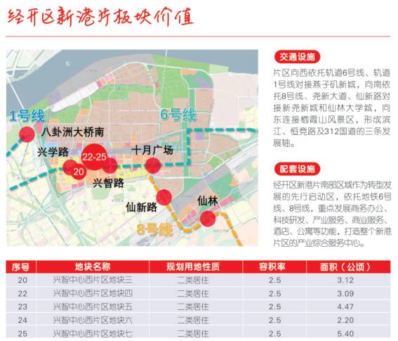 该板块功能定位为南京经济技术开发区、出品加工区的生活配套区,重点发展商务办公、科技研发、产业服务、商业服务、酒店、公寓等功能,打造片区产业综合服务中心和创新产业高地。交通优势十分明显,板块内有在建的地铁6号线以及7号线,以及规划中的地铁8号线。