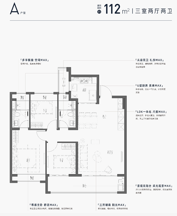 户型一览:户型分别是建筑面积约93㎡、116㎡、137㎡,基本涵盖了刚改以及纯改善两大主要客群,另有少量面积约150㎡、180㎡的顶底跃产品。