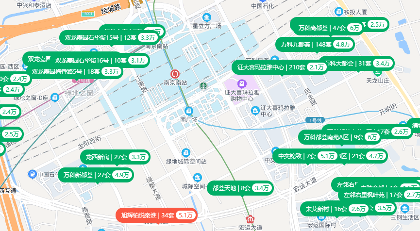 此前,南站片区站东区域的小区二手房均价相较站西要略高一些,这其中除了交通、行政属性因素,还受到学校资源等因素影响。但随着站西的发展,近年来区域内二手房均价基本也在3.1-5.1万/㎡不等。