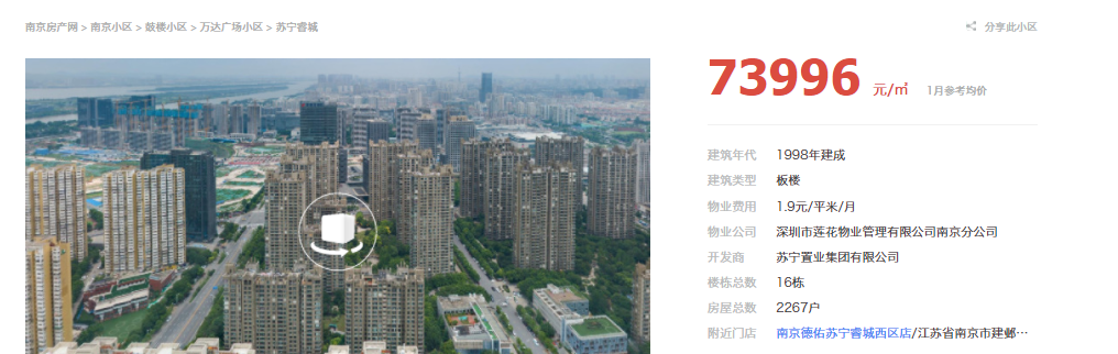 据链家网显示,项目隔壁的苏宁睿城二手房挂牌均价高达73996元/㎡。
