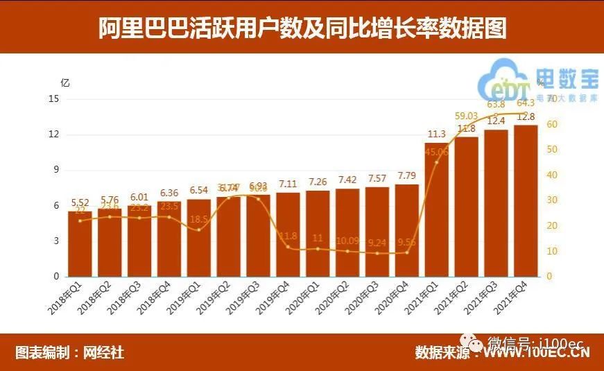 截至2021年12月31日止12个月期间,阿里巴巴生态体系的全球年度活跃消费者达到约12.80亿,较截至2021年9月30日止12个月增加约4300万,同比增长12.8%,环比增长3.2%。其中9.79亿消费者来自中国市场,以及3.01亿消费者来自海外,单季净增加分别超过2600万及1600万。