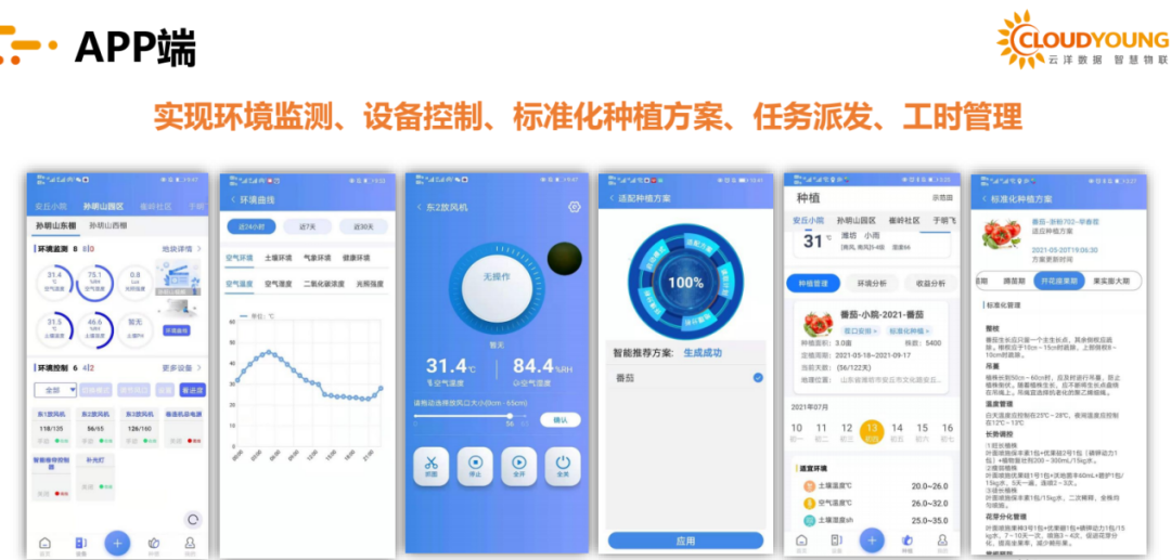 与此同时,在云平台生产者还可远程自动控制生产现场的灌溉、通风、降温、增温等设施设备,实现精准作业,减少人工成本的投入。