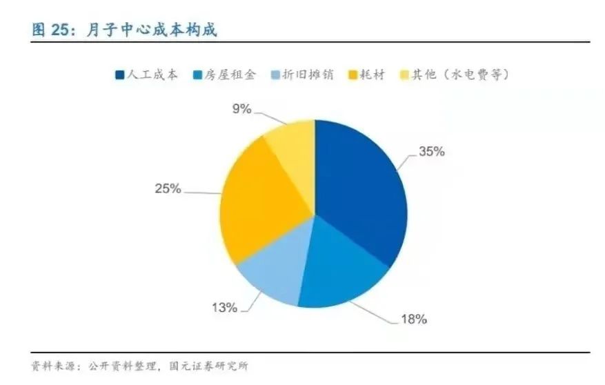 根据证券研究所的数据,从月子中心的成本构成看,每月的人工+房租就占了53%,这些支出,随着各种因素的变化,每年还在增加。