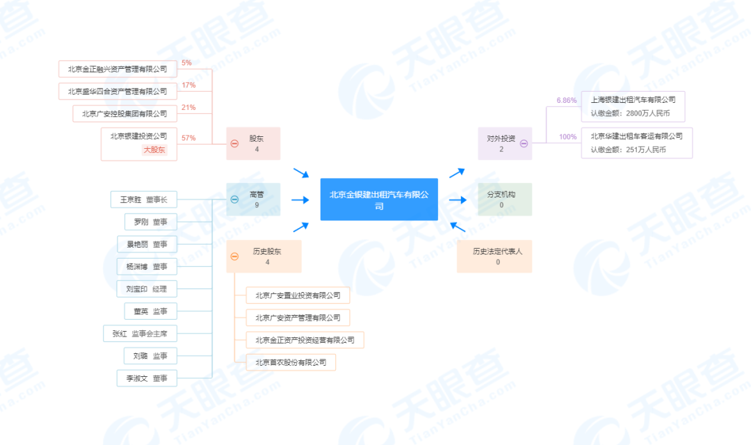 北京金银建出租汽车有限公司股权穿透图;图片来源:天眼查