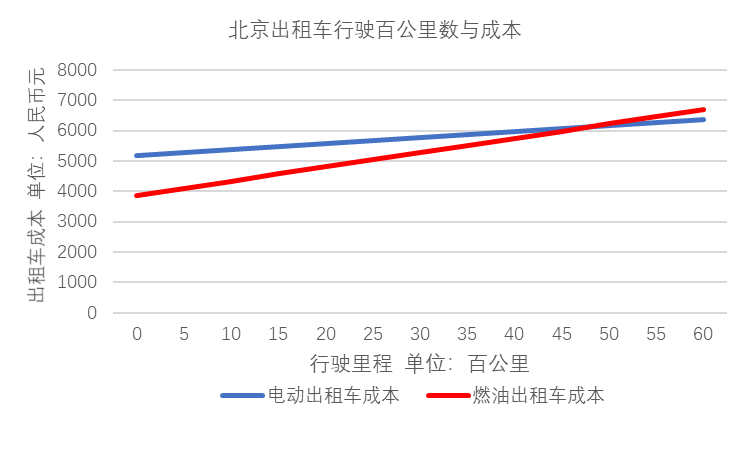 当行驶里程在5000公里左右时,电动车和燃油车的成本相当,一般出租车每日的行驶里程在300公里到400公里之间,大多数司机20天内就可以跑完,的确要比燃油车划算。但问题在于,到了冬天,这笔账就不是这个算法了。