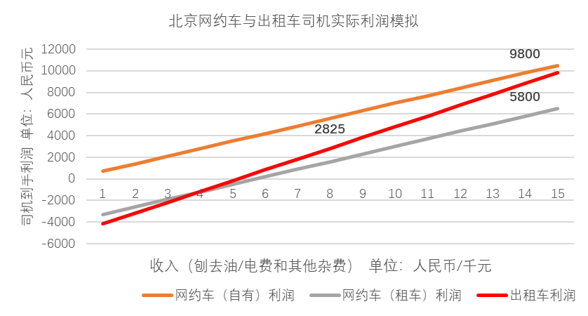 北京网约车与出租车司机实际利润模拟;制图:DoNews
