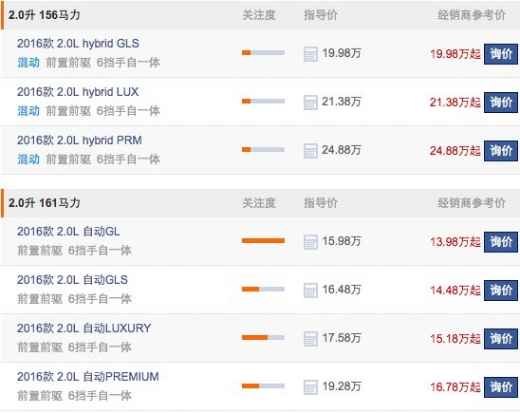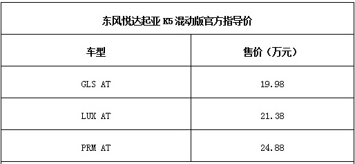 从起亚K5混动搭载2.0L发动机来看,K5传统动力动排量发动机车型的定价区间是15.98万元至19.28万元,K5传统动力高配车型售价也比混动版车型低0.7万元,比低配通排量车型高了4万元,高配混动车型比传统动力高配车型高了5万元。