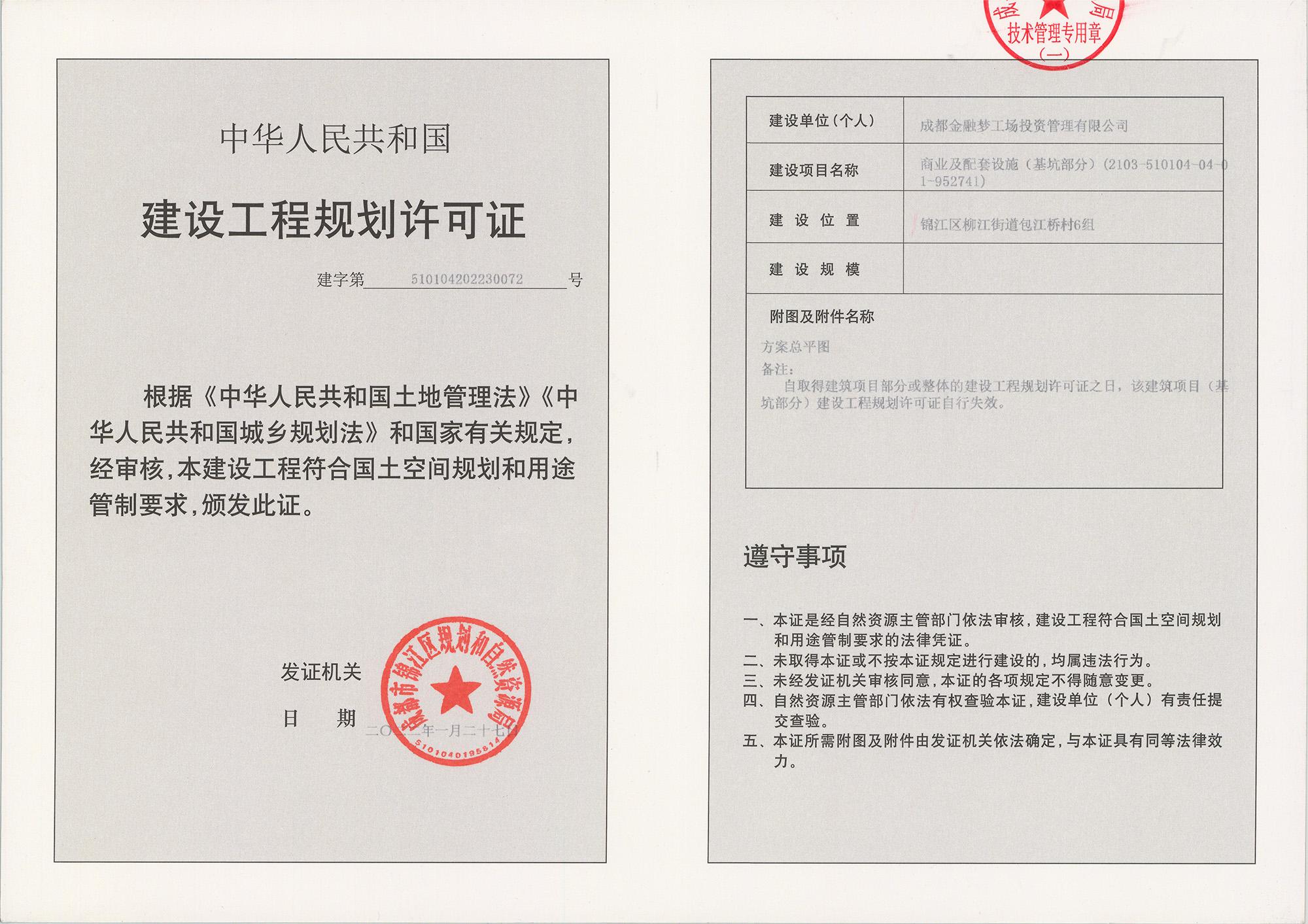 2月14日,成都市规划和自然资源局公布了2张建设工程规划许可证,建设单位主体为:成都金融梦工厂投资管理有限公司。