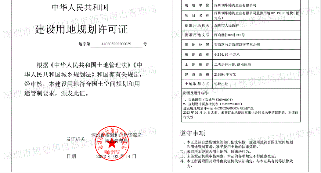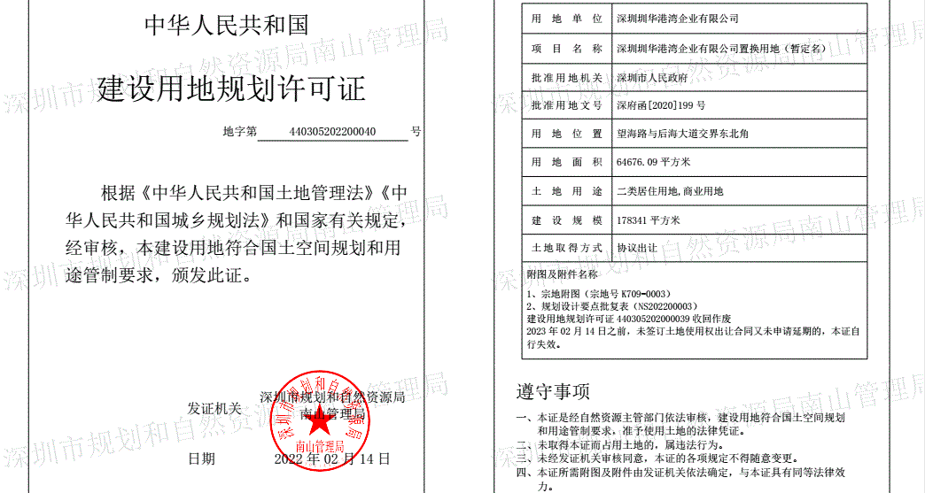 需要注意的是,若在2023年2月14日之前,圳华港湾公司未签订土地使用权出让合同又未申请延期,这两份规划许可证将自行失效。