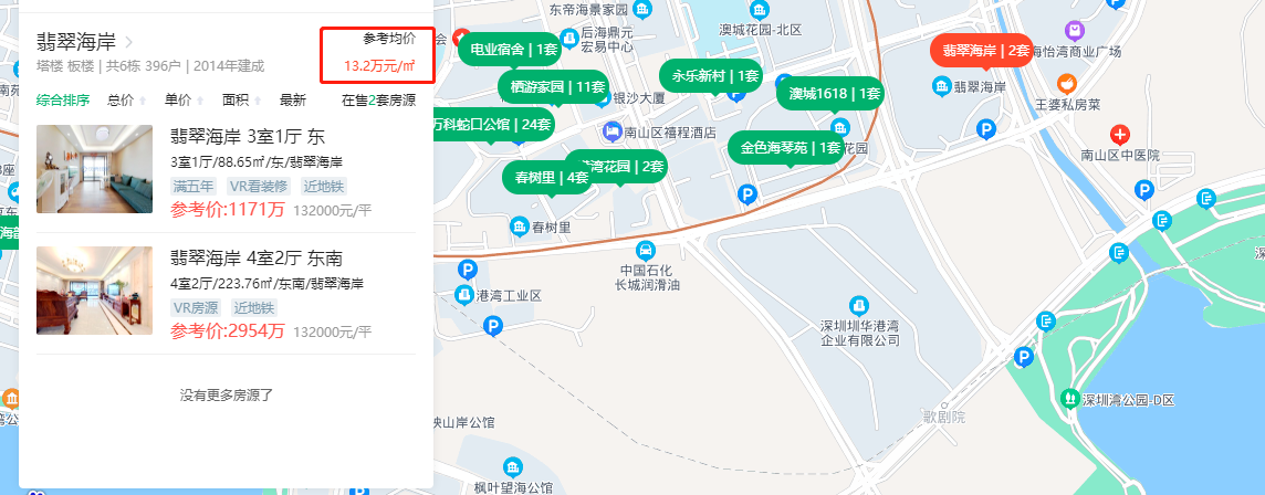 此外,在二手房方面,宗地周边的半岛城邦花园三期参考价为11.6万元/平方米;翡翠海岸参考价为13.2万元/平方米。