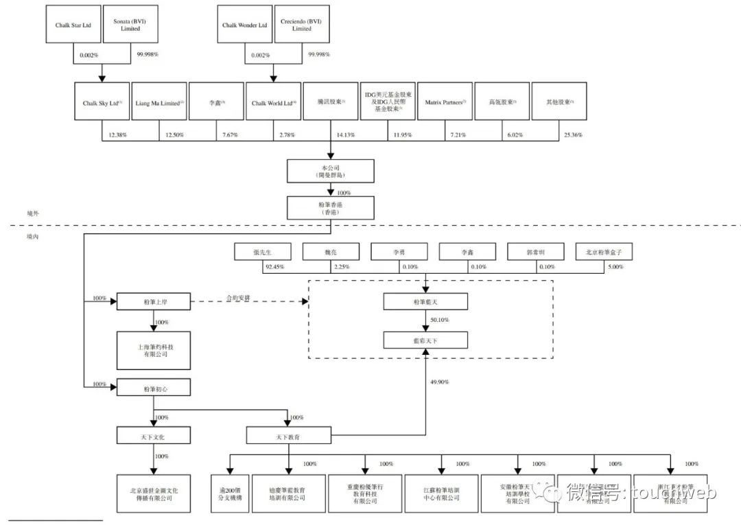 IPO前,粉笔科技CEO张小龙及其一致行动人一共持有35.33%的股权。