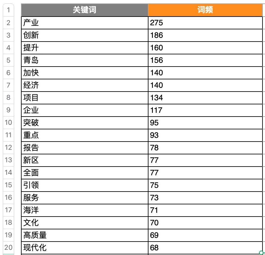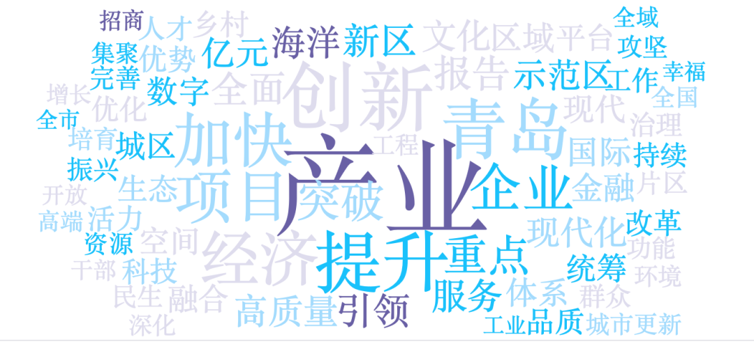 而高频词前十中另外三个词汇是“提升”、“加快”、“突破”,也说明了青岛的急迫性。