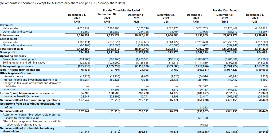 从整体上看,虽然理想汽车的净亏损还在增加,但相较造车新势力另外两家动辄超过几十亿元的亏损,理想汽车把亏损控制在3.2亿元左右,挺不容易。实际上,在造车新势力中,理想汽车的毛利率算是比较高的,2021年财报显示其毛利率从2020年的16.4%上升至21.3%。