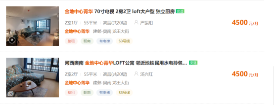 根据我爱我家数据显示,目前南京市场公寓投资的月租金多在2000-3000元之间,但金地中心菁华一套45㎡的两室公寓最高租金却高达4500元/月,位于南京公寓租金前列,这一以超人一等的回报率正得益于项目自身的高配资源!同时本案对比河西南周边住宅,单价仅为住宅的0.45倍,价格倒挂明显,且具有面积小门槛低,不占购房资格等优势,租金稳定,低风险,风险远低于股市,不仅方便生意洽谈&会客,更可成为都市里的第二居所。
