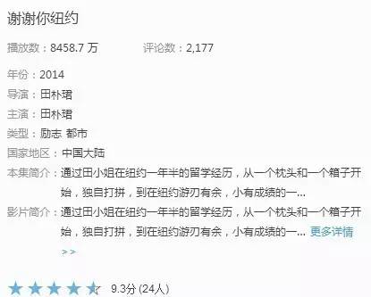 现在想想,那就是田小姐创业的作品吧。叫做《谢谢你,纽约》,翻拍自她的个人随笔集《习惯就好》,讲述田小姐在纽约一年半的留学经历。发布会通稿写得挺有意思,田小姐眼中的自己和自己的故事是这样的: