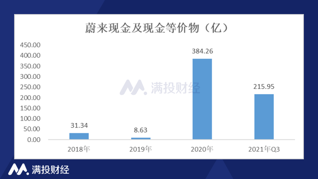 回顾近几年,蔚来经历了过山车般的旅程,由于巨大的成本费用支出,蔚来2019年的时候一度面临“生死危机”,为控制支出,提升运营效率,蔚来在2019年的9月份裁员1200人以缓解公司的现金流危机。但真正将蔚来从危机中解救出来的是2020年多轮融资的成功,为蔚来注入了超400亿元的资金,截至2020年期末,蔚来的现金及现金等价物从2019年的8.63亿元飙升至384.26亿元。截至2021年三季度末,蔚来现金流仍有215.95亿元,暂时不会再次出现现金流危机,但蔚来尚未实现自我造血能力,若没有新的资金注入,以蔚来烧钱的速度之快,这笔钱仍非常有限。