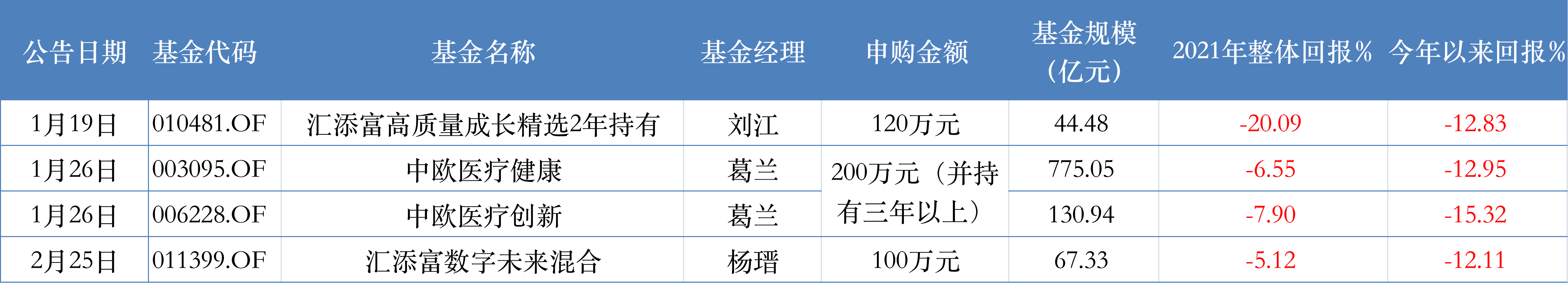 2月25日,汇添富发布公告称,旗下基金经理杨瑨本着与广大投资者风险共担、利益共享的原则,出资100万元申购汇添富数字未来。