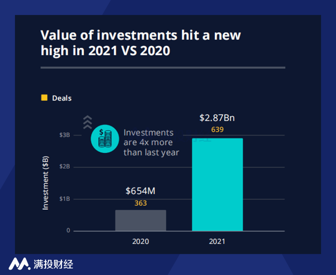 在过去的一年中,MENA的投资创下了许多新的里程碑,一项项记录被打破。软银和红杉资本进入该地区,总投资额突破28亿美元(其中近一半投往阿联酋的初创公司),这个数字近乎是2020 年筹资额的四倍。种种迹象都在说明一个事实,MENA正在成为世界投资的焦点。