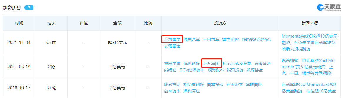 天眼查APP显示,从去年开始,提出“躯体灵魂论”的上汽集团接连两轮投资自动驾驶初创企业Momenta,转身积极拥抱合作。